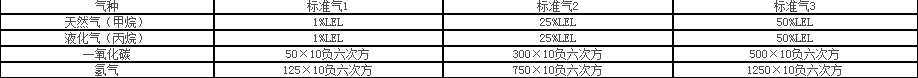 表2.3 檢驗(yàn)無(wú)濃度顯示的氣體探測(cè)器的標(biāo)準(zhǔn)氣濃度